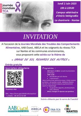 AAB Ouest se mobilise avec les partenaires du réseau TCA en Vendée pour vous proposer une soirée d’information et d’échanges consacrée aux TCA, au travers de la thématique "image de soi, regards des autres".