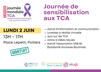 Le Centre de Recours et de Coordination des Troubles des Conduites Alimentaires (CRC TCA) Nord Nouvelle-Aquitaine Poitiers organise une Journée Scientifique TCA le mardi 2 juin à Poitiers.