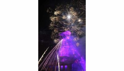 Eclairage en violet de bâtiments publics à Saint-Etienne
