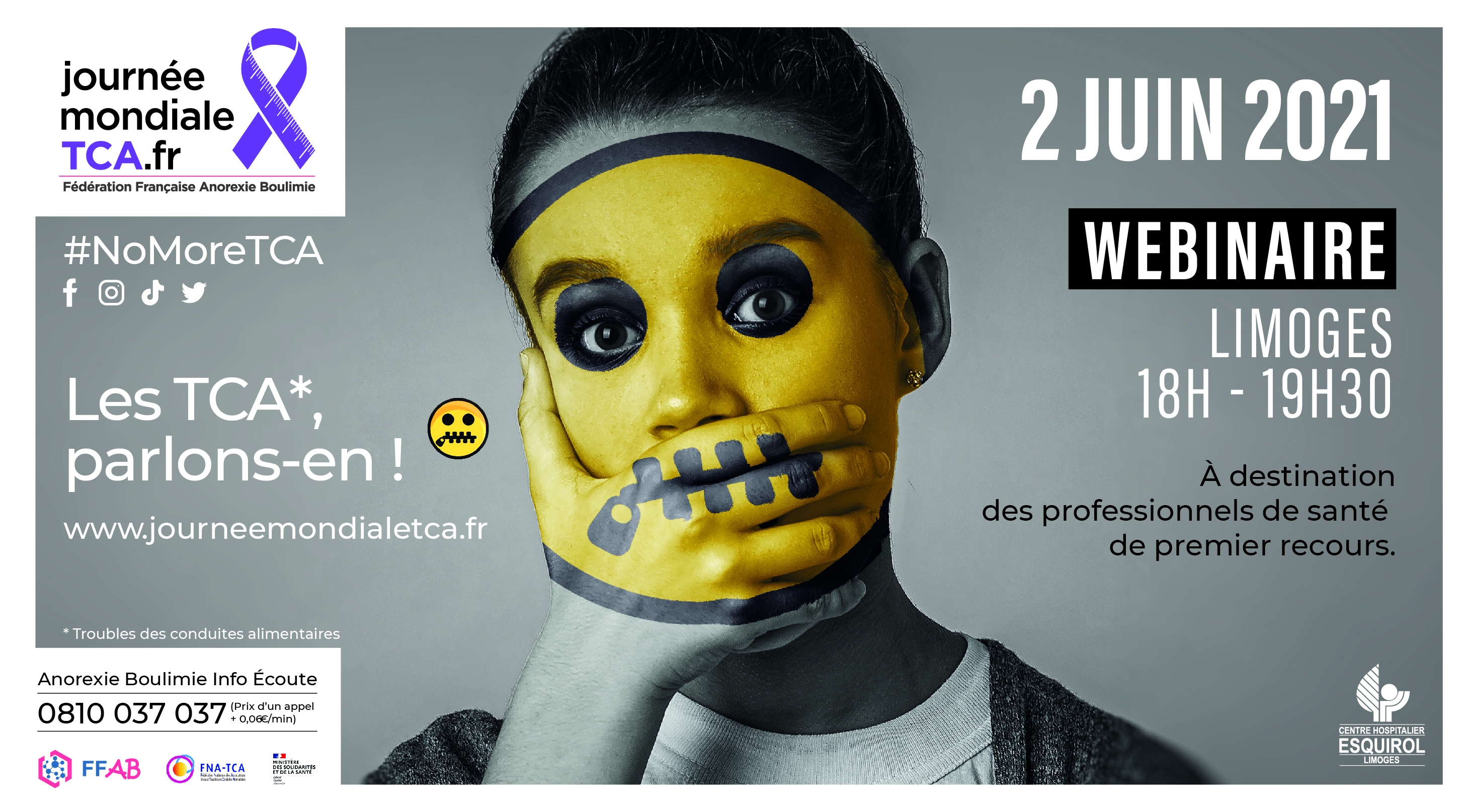 Webinaire sur l'abord et les soins aux personnes souffrant de TCA . Présentation par des membres de l'équipe multidisciplinaire ( Nutritionniste - Psychiatres- Psychologues- Diététicienne- Psychomotricienne- Infirmier ) les prenant en charge au sein du Pôle Universitaire d'Addictologie du Centre Hospitlier Esquirol associée au service universitaire de Nutrition du CHU Dupuytren . A destination prioritairement des professionnels de santé locaux avec l'aide du Conseil de l'Ordre départmental des médecins.